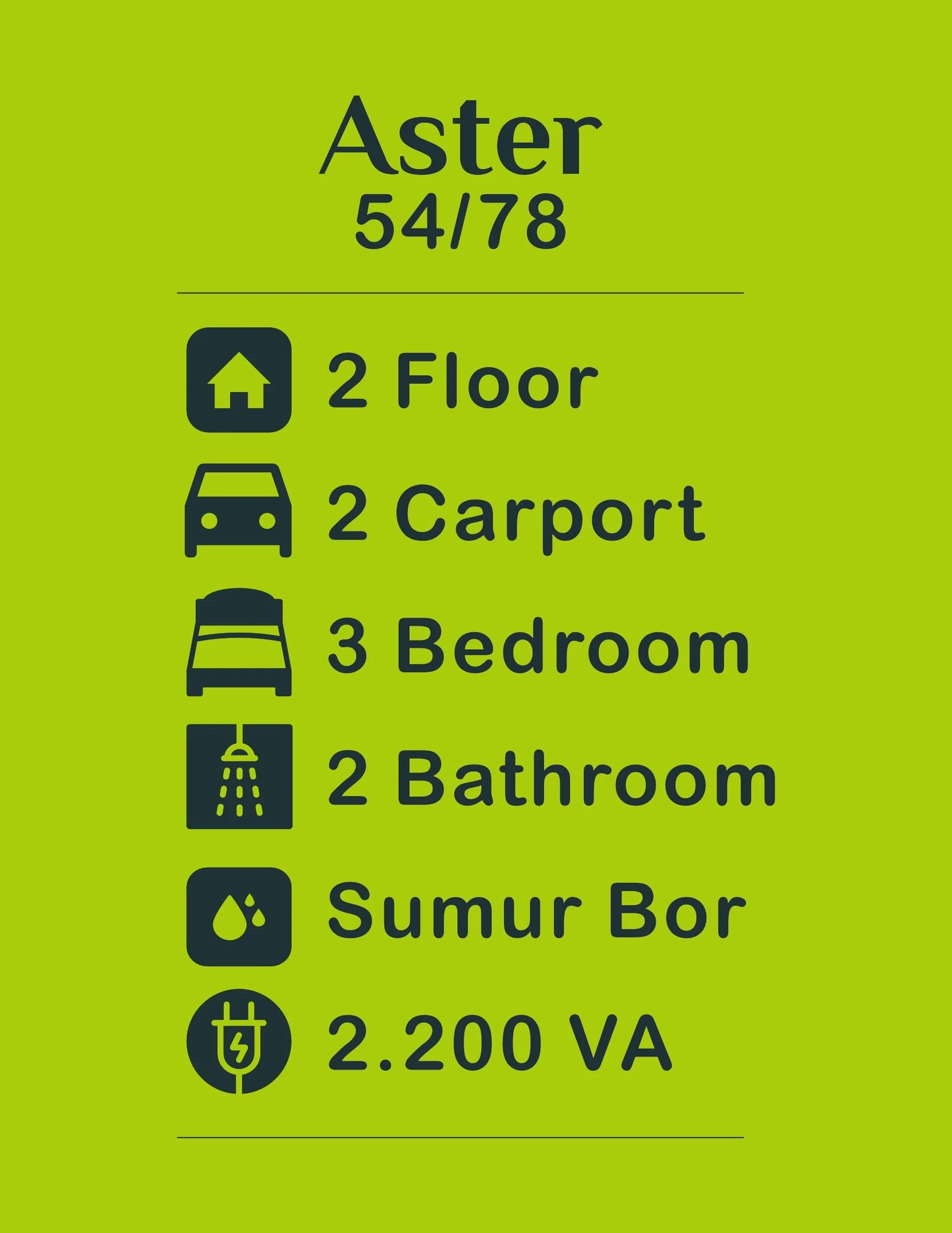 Tipe rumah Aster adalah pilihan ideal bagi Anda yang menginginkan hunian modern, nyaman, dan tahan lama. Kombinasi desain menarik dan spesifikasi lengkap menjadikannya investasi yang bernilai.