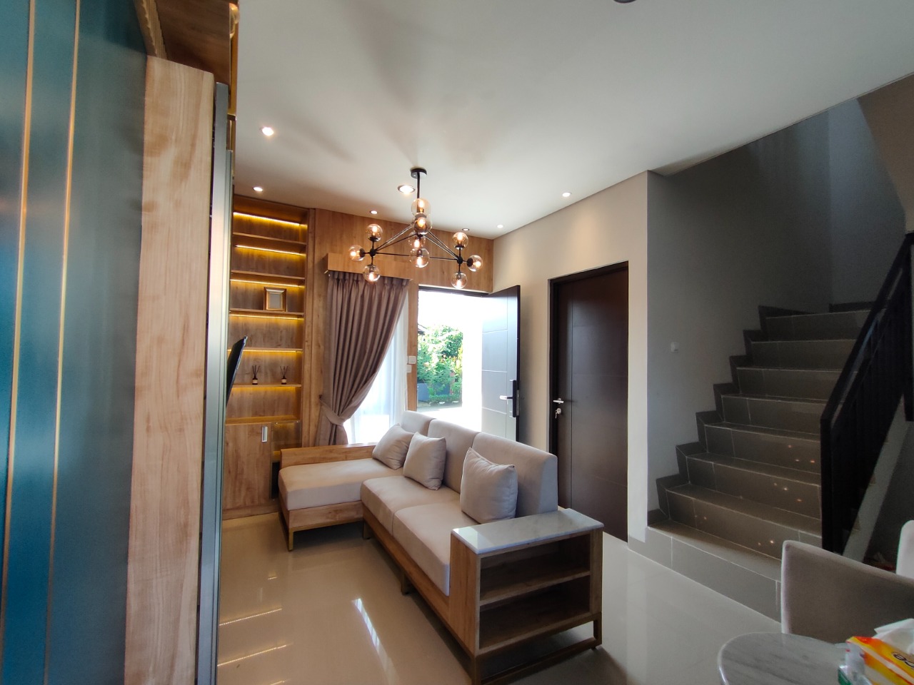 Lantai: Homogenius tile 60x60, tampilan modern dan mudah dirawat.