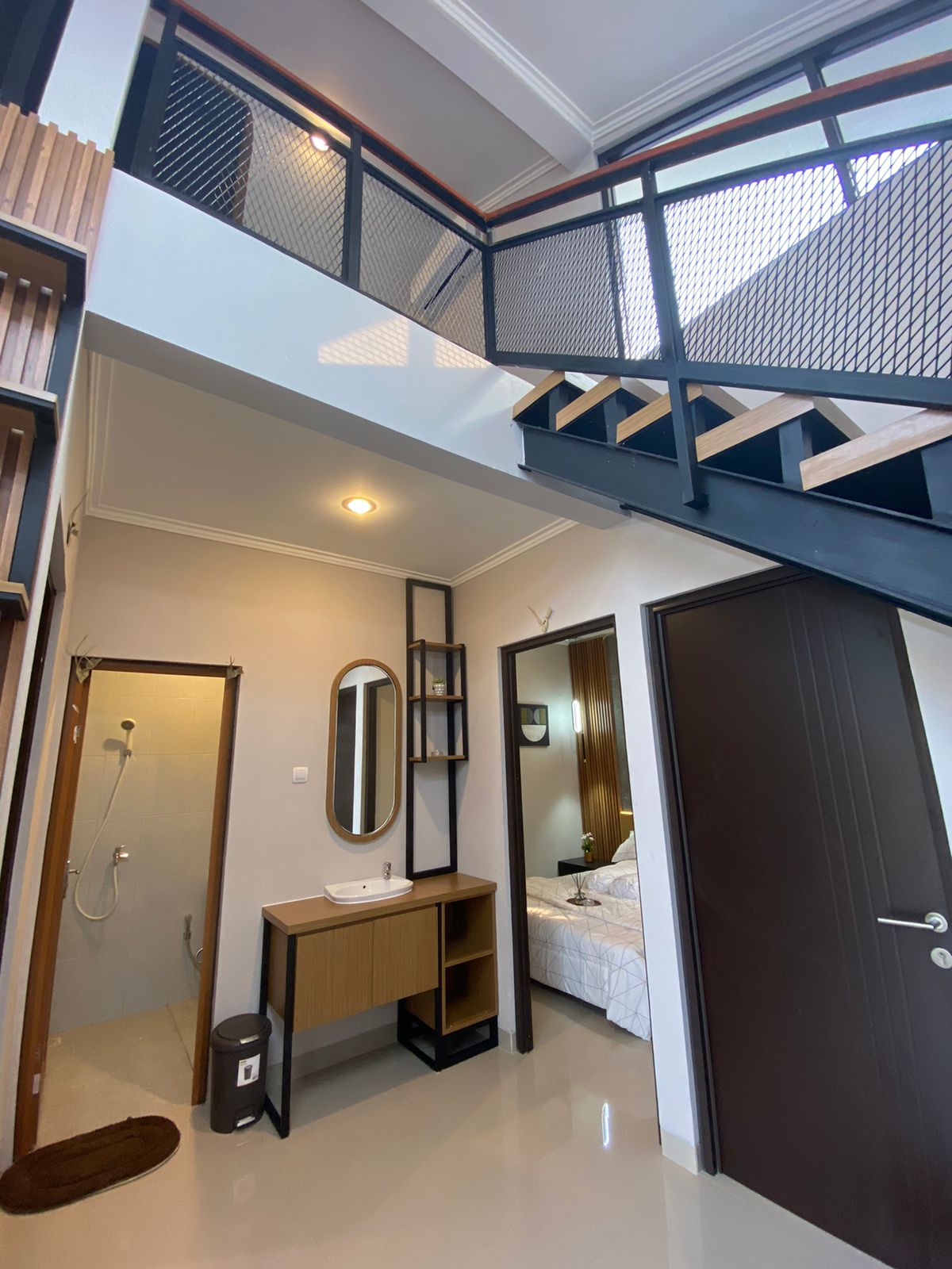 - Dinding: Bata ringan dengan finishing plester aci dan cat yang memberikan kesan modern dan bersih.